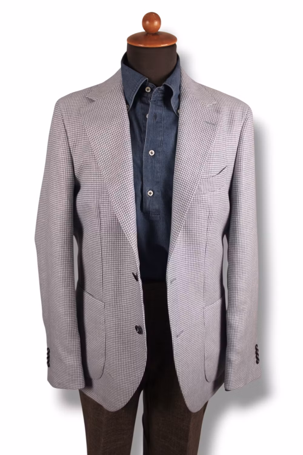 Denna kavaj kan kombineras med allt från jeans till tunna linnebyxor eller våra bruna ullbyxor. Bär den gärna med skjorta och slips eller med en av våra bomullspolos, för en lite ledigare look. Utanpåliggande fickor och trubbiga slag ger kavajen ett klassiskt uttryck samtidigt som den blir något mindre formell.
