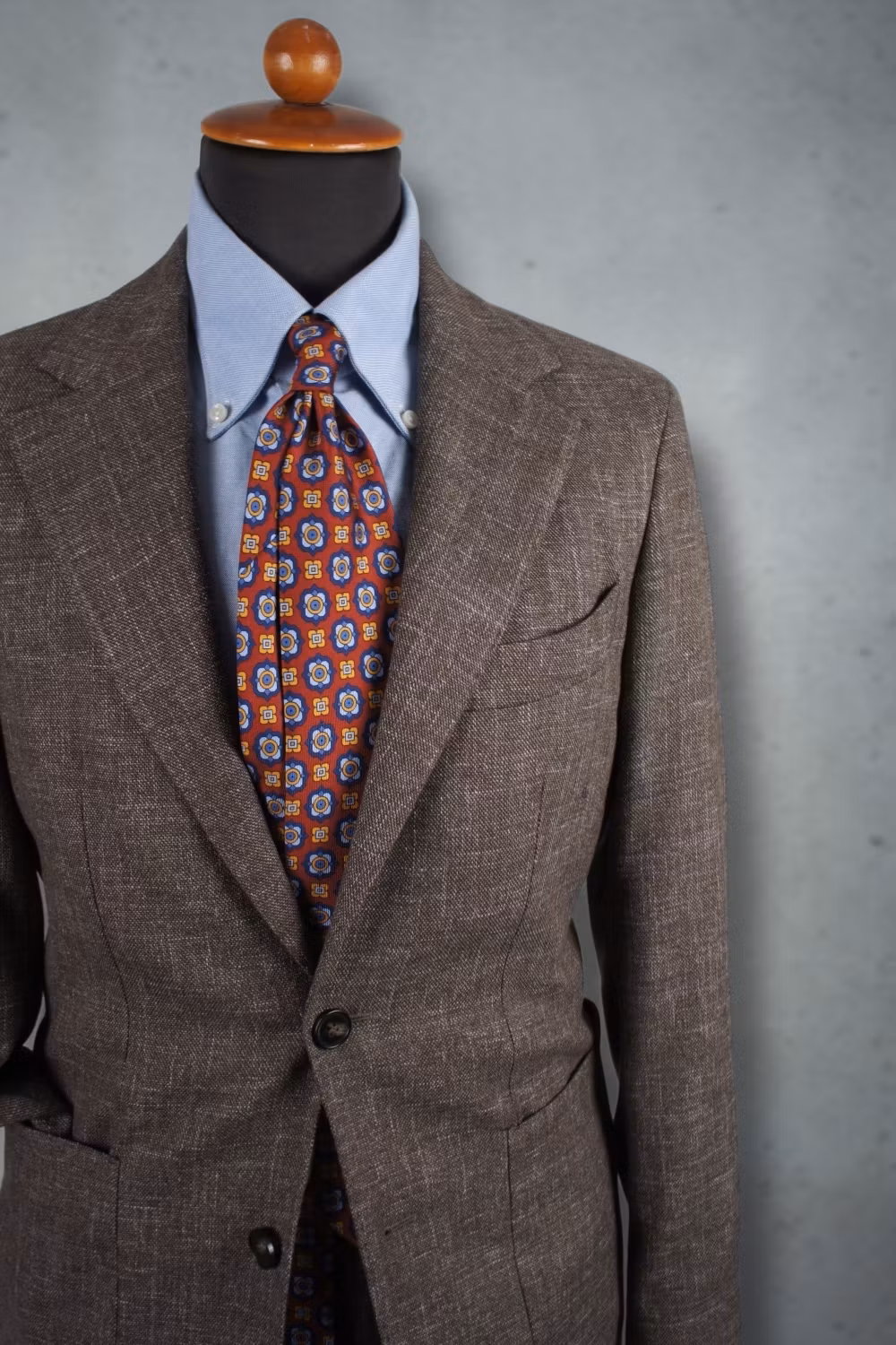 Brun okonstruerad kavaj bomull/linne. Modellen är inspirerad av den neapolitanska stilen med halvfodrad konstruktion och mjuka axlar.