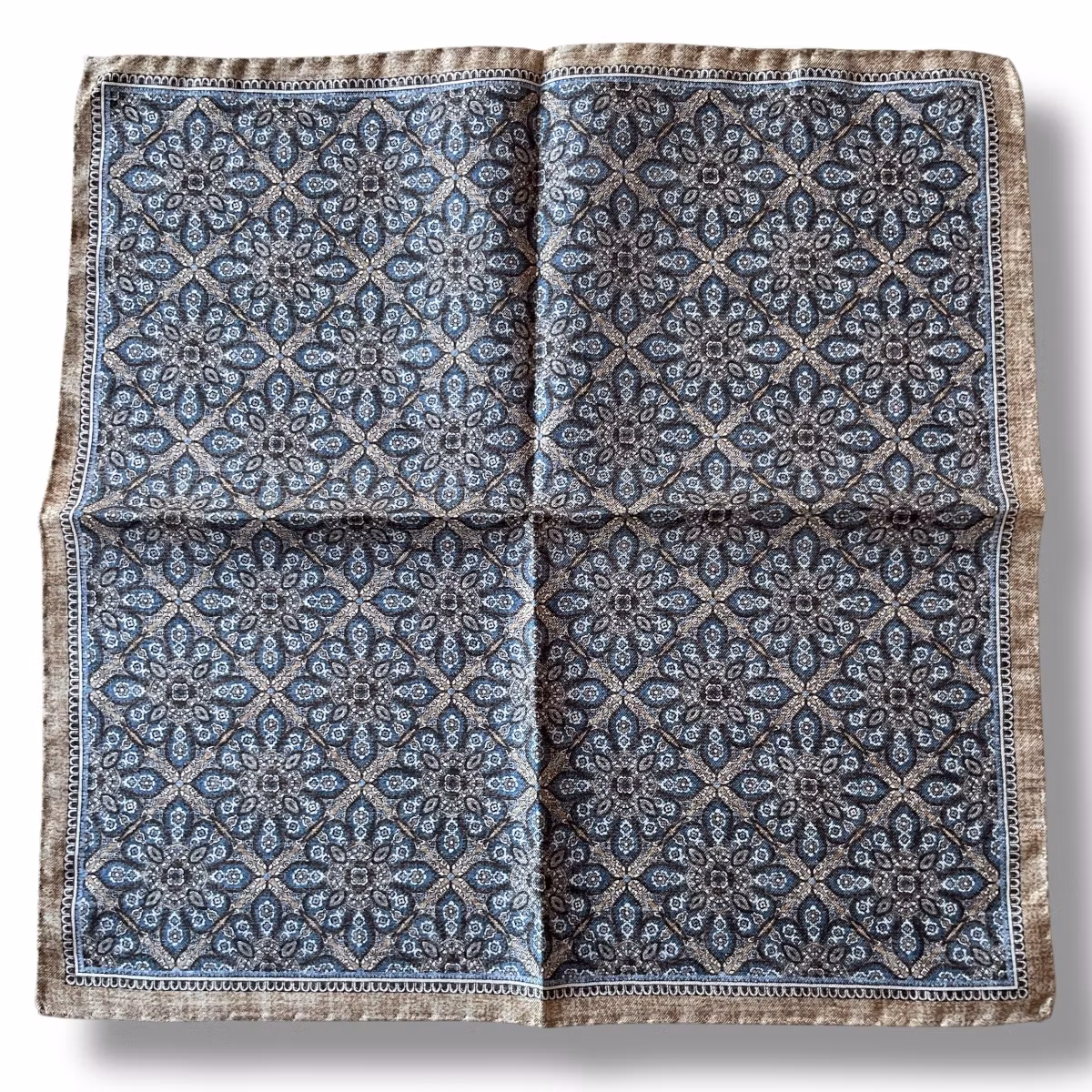 Large Floral Silk Pocket Square - Beige/Light Blue