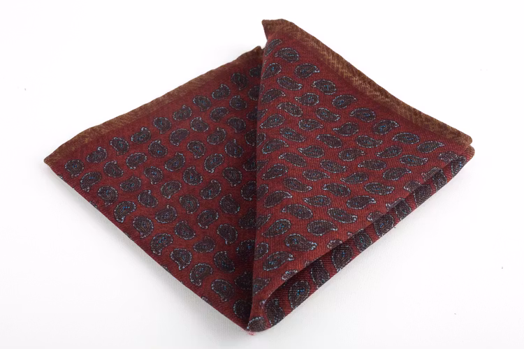 Paisley Wool Pocket Square - Burgundy/Brown 399 kr 279 kr I lager. Lägg i korgen Dela Artikelnummer: 2432 Information Recensioner Näsduk i tunt tyg av 100% ull med printat mönsterStorlek: 33x33 cmRullade kanterTillverkad i södra Italien