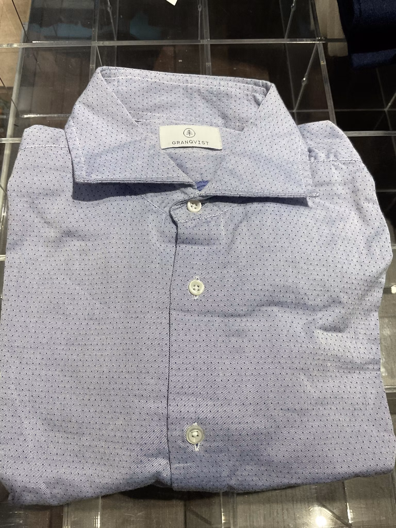 Pindot Twill Shirt - Light Blue/Navy 999 kr I lager. Lägg i korgen Dela Artikelnummer: 6472 Information Recensioner 100% cotton shirt in size 40. Old modell that is somewhat tighter