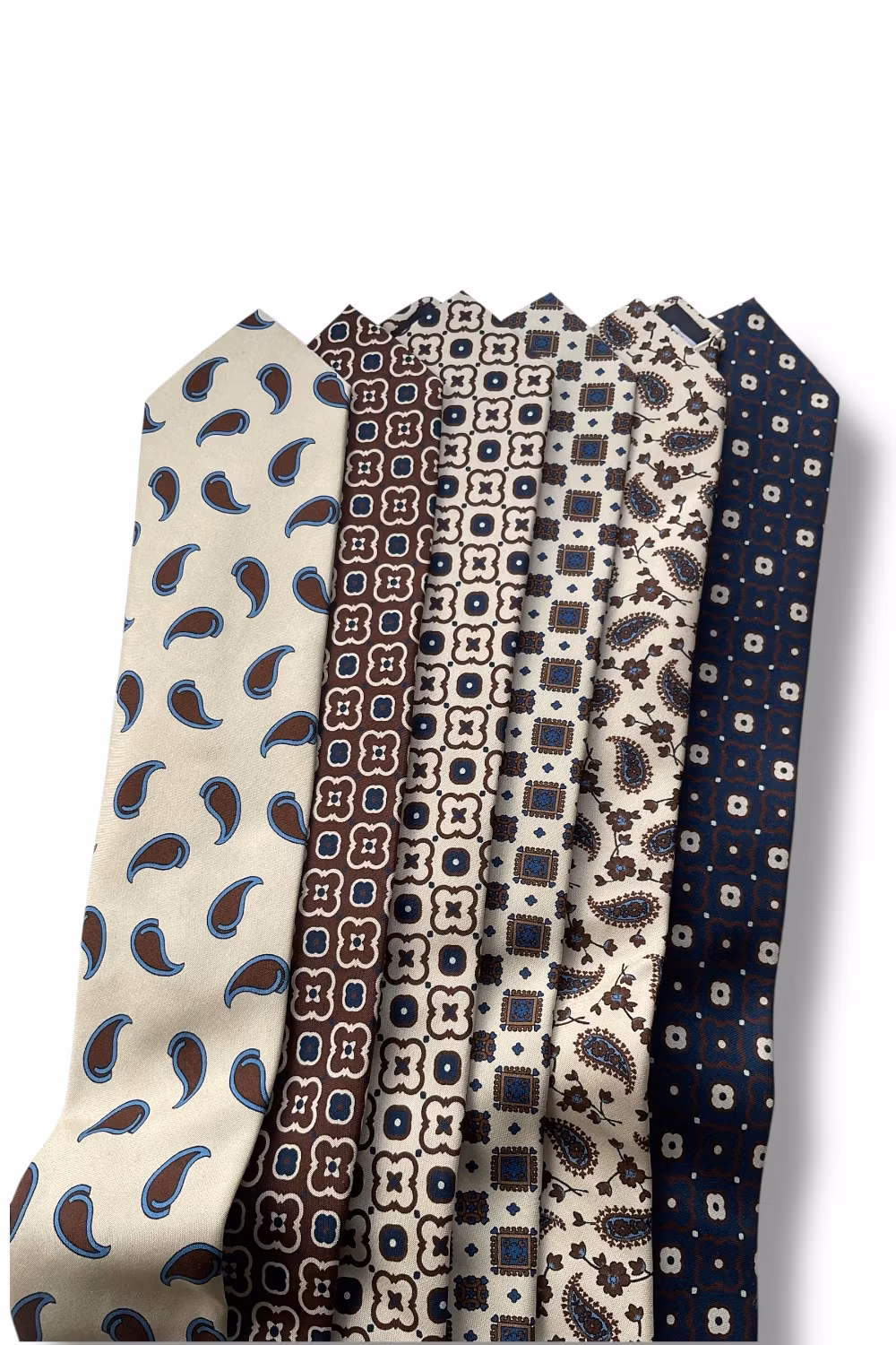 Medallion Cotton Tie - Navy Blue/Brown/Cream 799 kr I lager. Lägg i korgen Dela Artikelnummer: 6574 Information Recensioner Slips i 100% bomull med tryckt mönsterThreefold konstruktion med lätt foderGer en tight knut och fint fallMått: 150x8 cmTillverkad för hand i södra Italien
