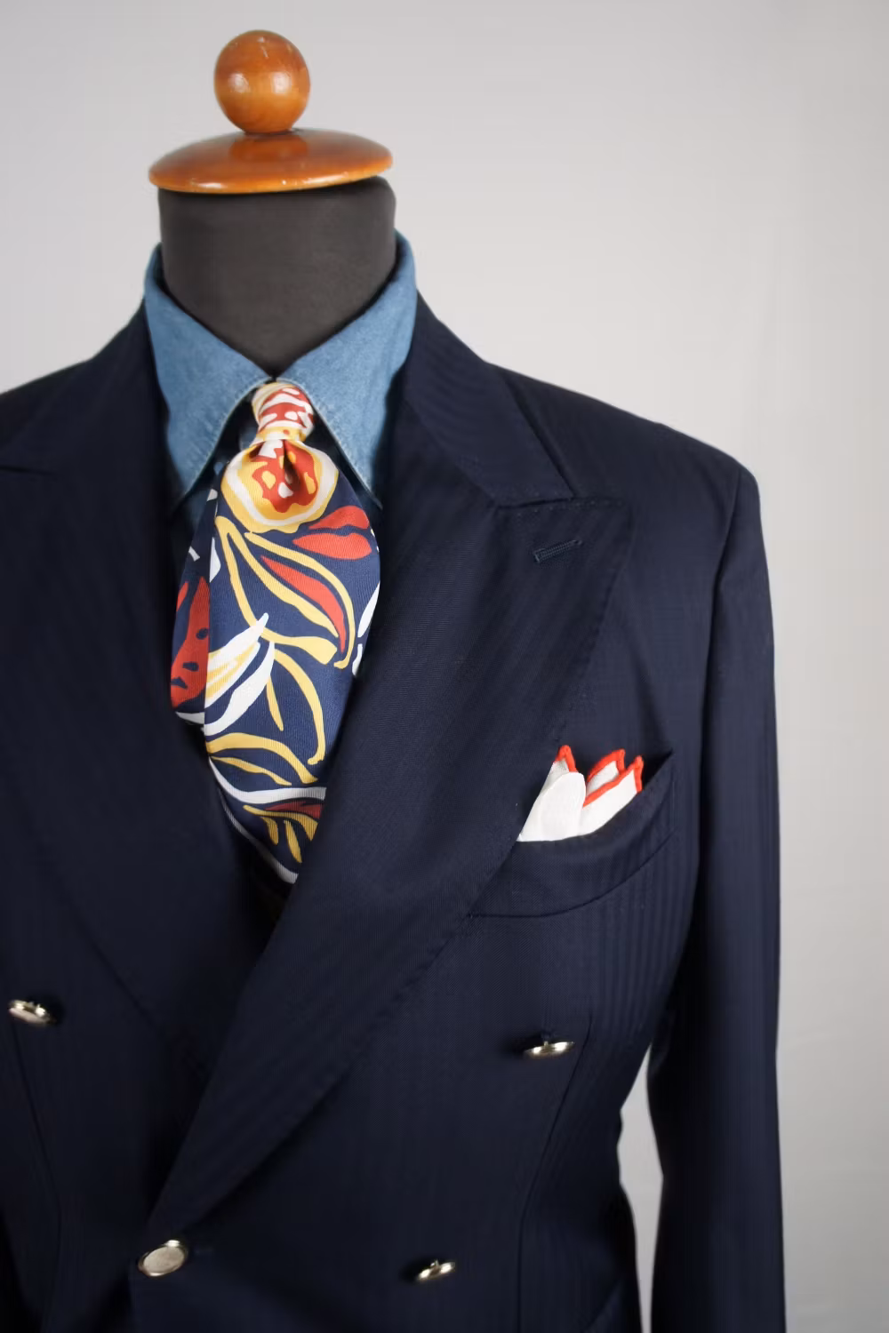 Large Paisley Printed Silk Tie - Navy Blue/Burgundy/Yellow/White 799 kr I lager. Lägg i korgen Dela Artikelnummer: 6517 Information Recensioner Sidenslips med tryckt paisley -mönster100% siden, tryckt i ComoThreefoldTunt foder för en lätt känsla, ger en liten tight four-in-hand -knutMått: 150x8 cmTillverkad för hand i södra Italien