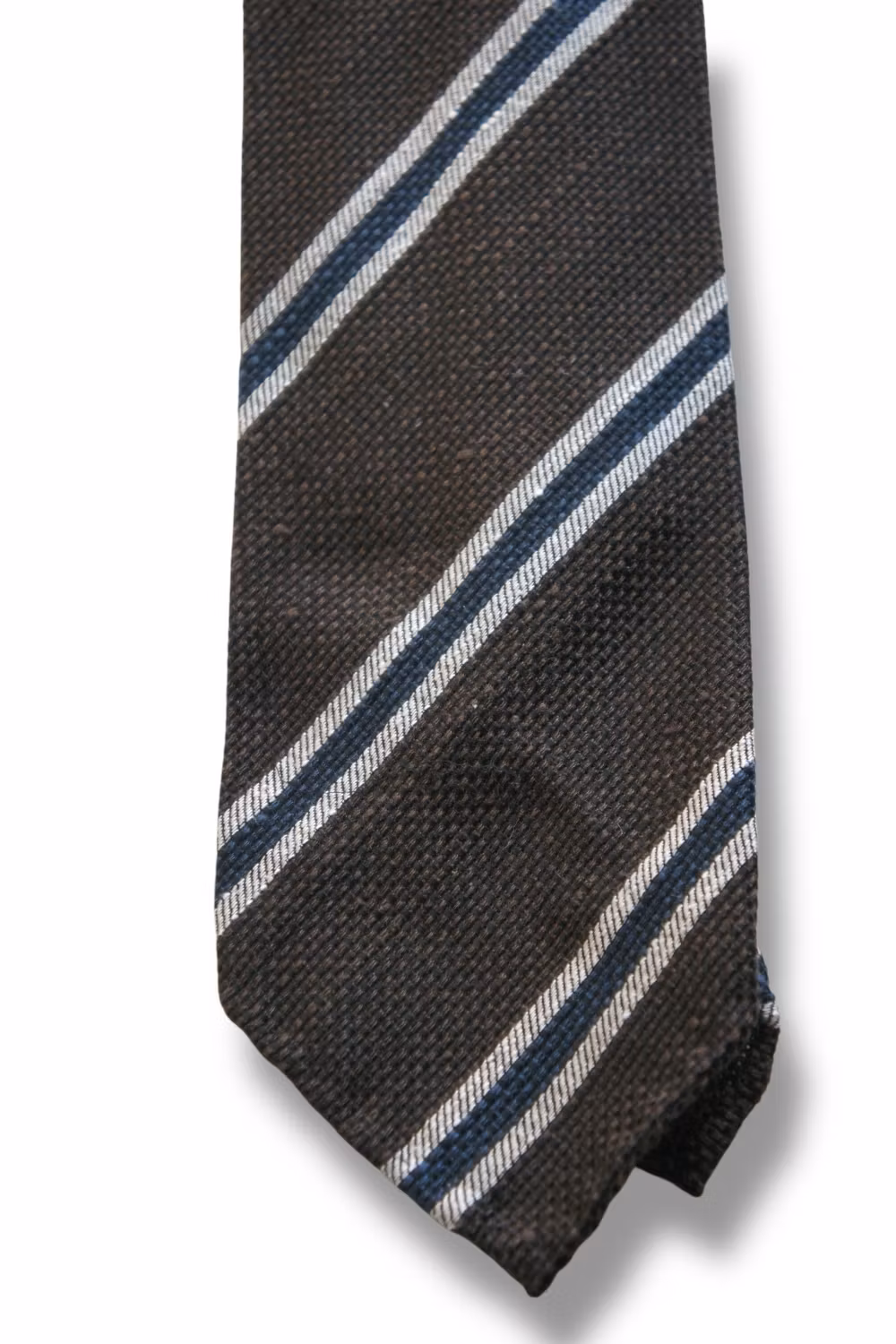 Regimental Shantung Tie - Untipped - Dark Brown/Navy Blue/White 999 kr I lager. Lägg i korgen Dela Artikelnummer: 6461 Information Recensioner Randig shantungslips i 100% siden (råsiden)Threefold konstruktion med handrullade kanterLätt konstruktionMönster: RandigMått: 150x8 cmTillverkad för hand i Italien